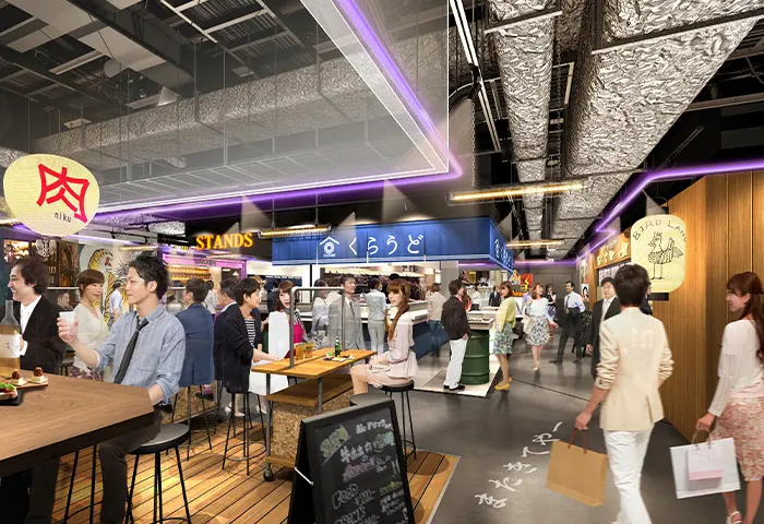 朝から夜まで多様なメニューを提供する大型のオールデイダイニングや、リーズナブルな価格で利用できる海外の有名レストラン・カフェ、テイクアウト可能な店舗などが集まった、JR大阪駅の新たな玄関口としての役割を担います。